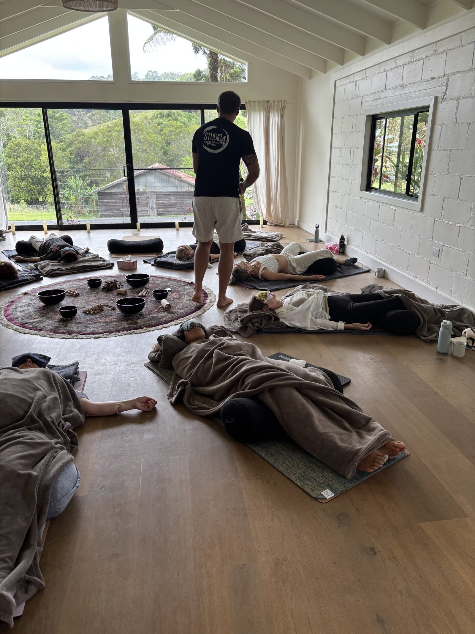 Breathwork with Troy and Bec was the turning point – ‘the breath of transformation’ – dismantling old patterns, beliefs, and tensions. It was a journey of self-exploration, self-soothing, and a reclamation of personal power. Tears were wept for all of humanity.