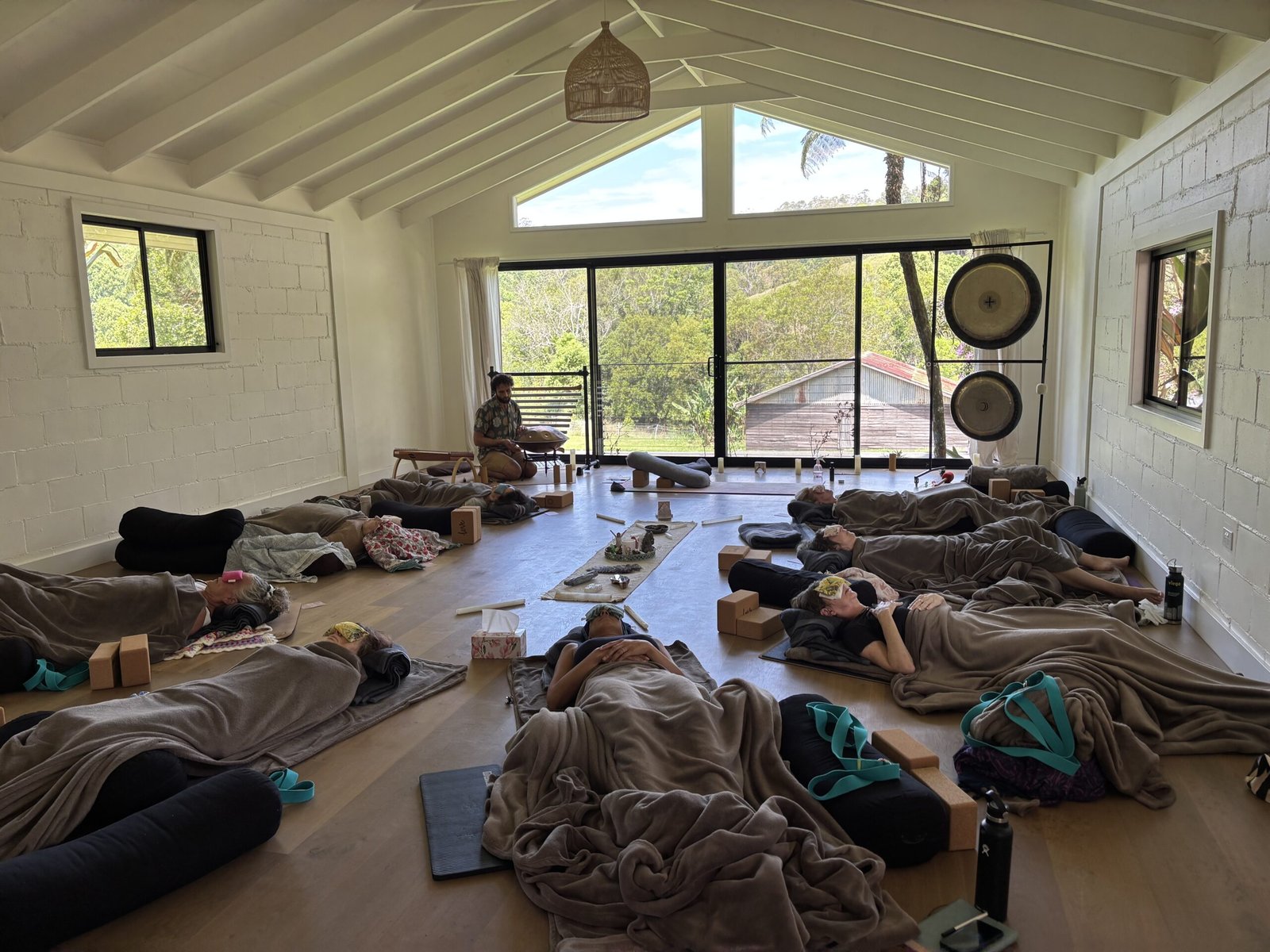 The final day was a mystical blend of sound and restorative yoga, guided by Matty and myself. Leaving no stone unturned, here, the body released what remained in the way, any unresolved trauma or pain, – physical, emotional, or mental – allowing peace and stillness to return. Nothing to fix, nothing to fill or take away, simply space to be. A rekindling of faith and trust in every cell of the body.